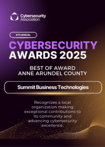 We’re excited to share that Summit Business Technologies has been recognized as the Best of Anne Arundel County 2025 by the Cybersecurity Association, Inc.! This honor reflects the trust of our clients, the dedication of our team, and the support of the community we’re proud to be part of.